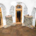 - Ściana telewizyjna z tynku glinianego z drobną frakcją słomy i PCM – ciepła faktura, lepsza akustyka.